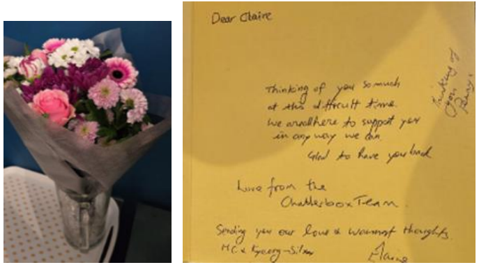 갑작스럽게 남편을 여의고 생계를 위해 애써야 하는 그분의 이름을 예약 명단에서 발견한 조경실 선교사는, 사역 시작 불과 30 분 전임에도 곧장 달려가 위로의 꽃다발과 카드를 준비했습니다.